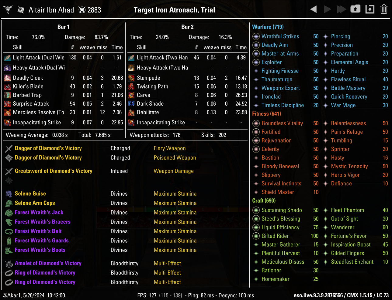Білд стаміна нічного клинка (НБ) з крафтових сетів і з ванільною монстр-маскою.
