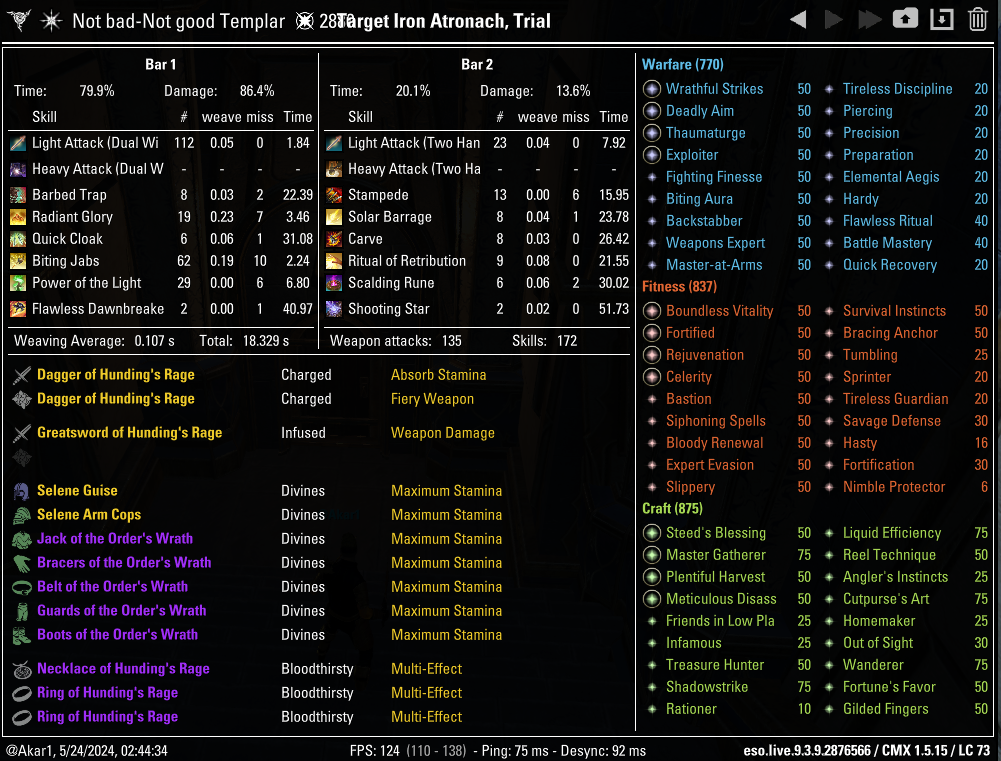 Білд стаміна темплара з крафтових сетів і з ванільною монстр-маскою.